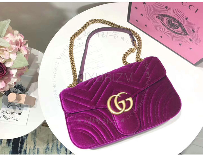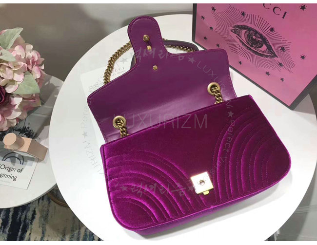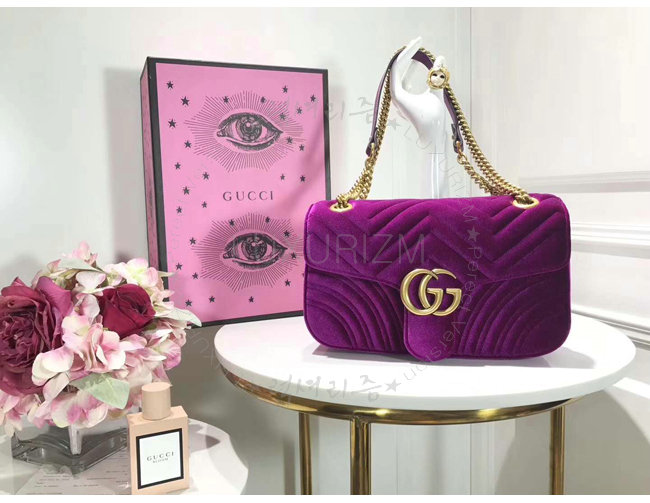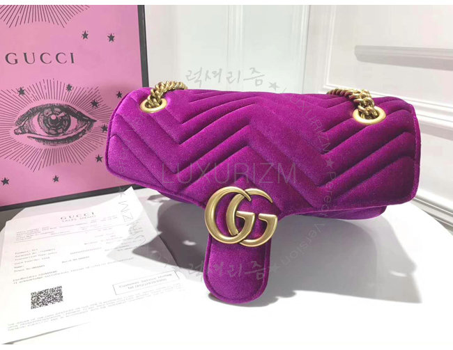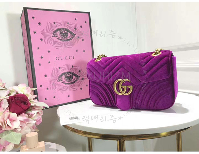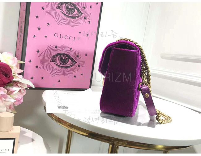 [스페셜오더]GUCCI-443497 5671 구찌 GG Marmont 마틀라세 페트롤 루비 벨벳 숄더백