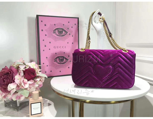 [스페셜오더]GUCCI-443497 5532 구찌 GG Marmont 마틀라세 핑크 벨벳 숄더백 가격 : 380,000원