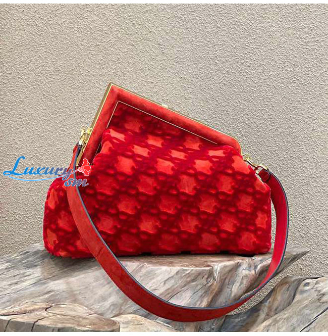 [스페셜오더]FENDI-8BP127 펜디 레드 스웨이드 퍼스트 미디엄 백