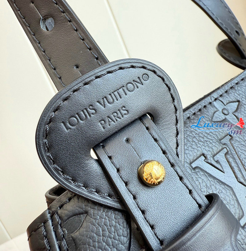 장식적인 LV 패드락과 네임 택을 포함한 시그니처 디테일이 특징.