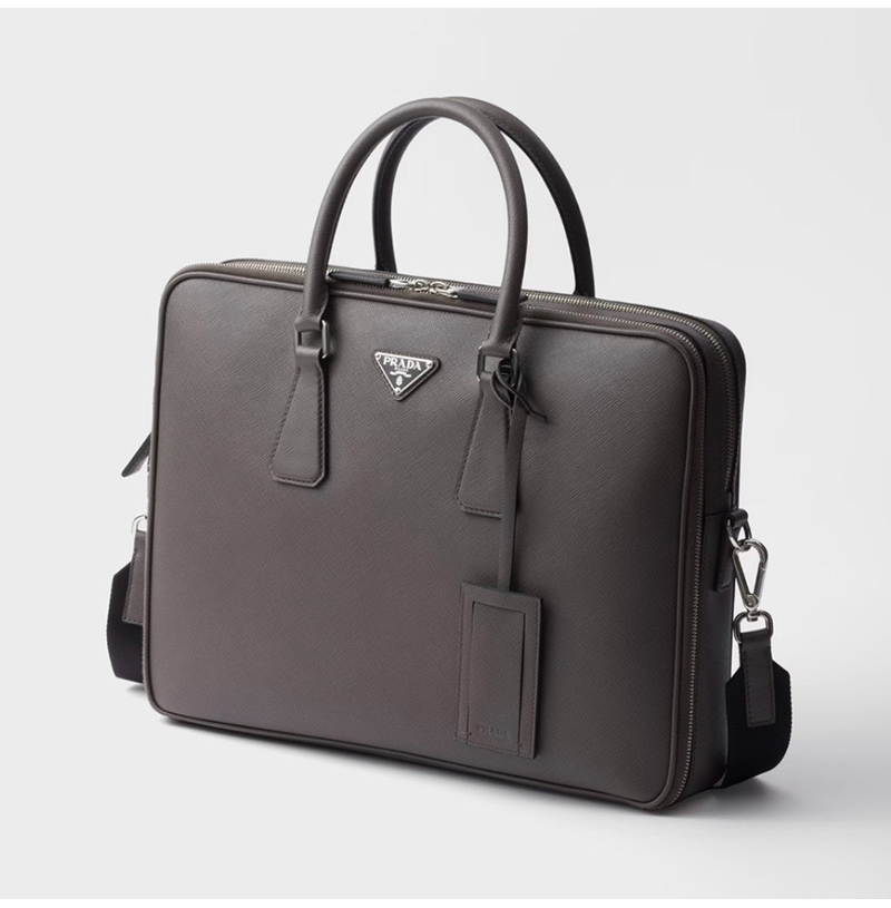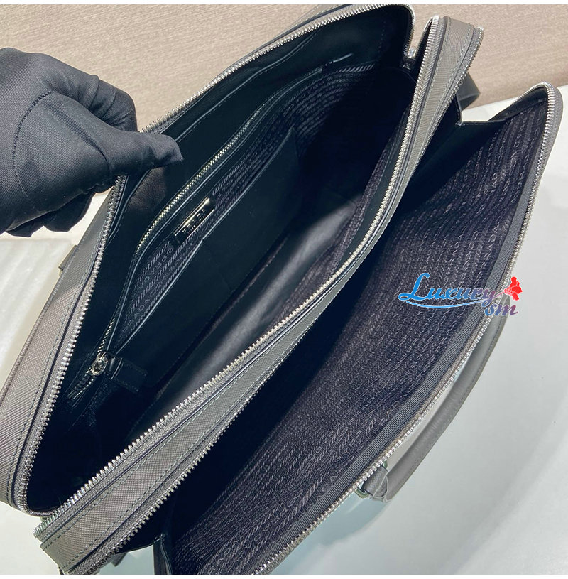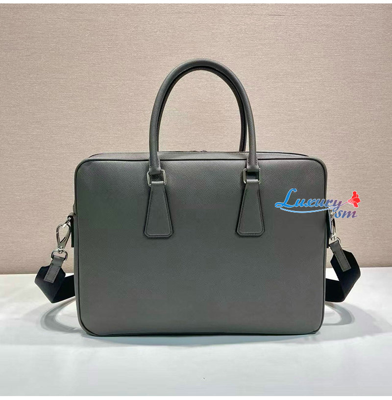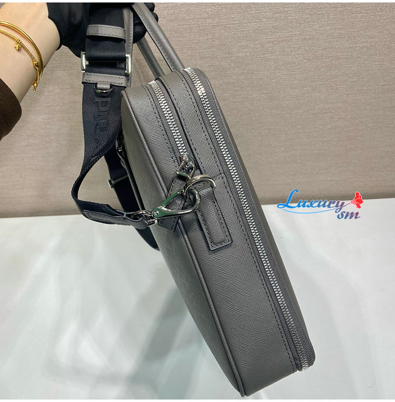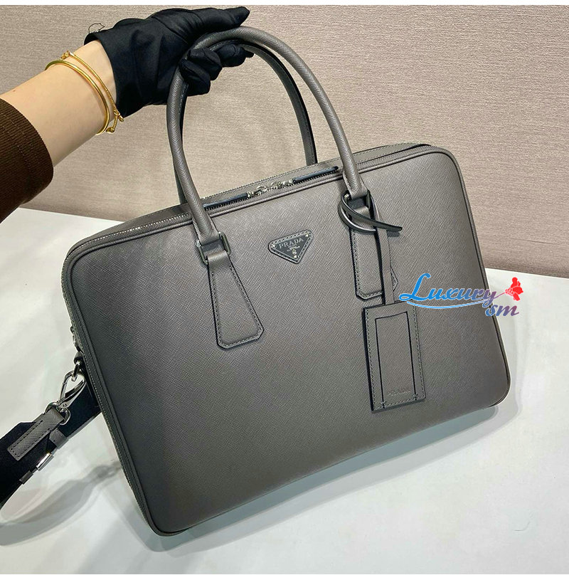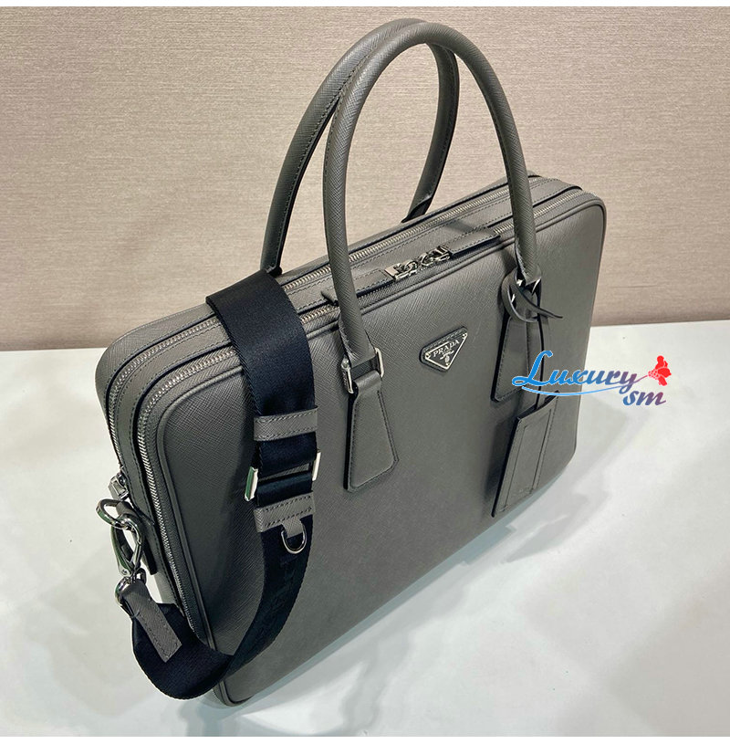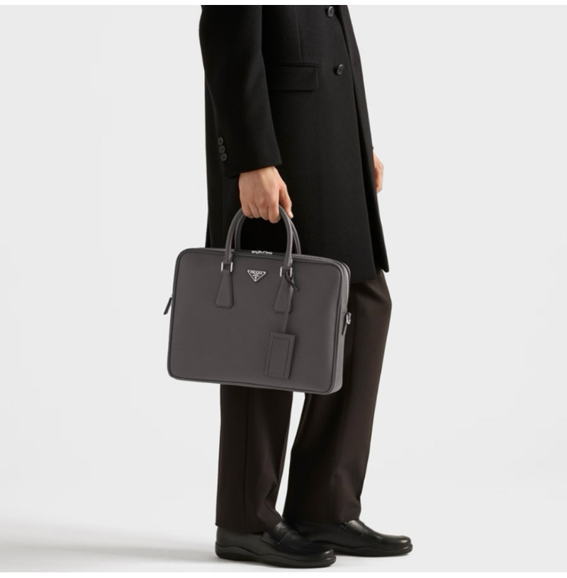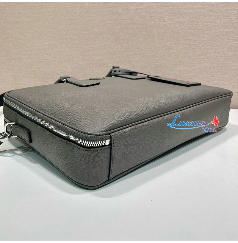 [스페셜오더]PRADA-2VE022 프라다 그레이 사피아노 가죽 브리프케이스