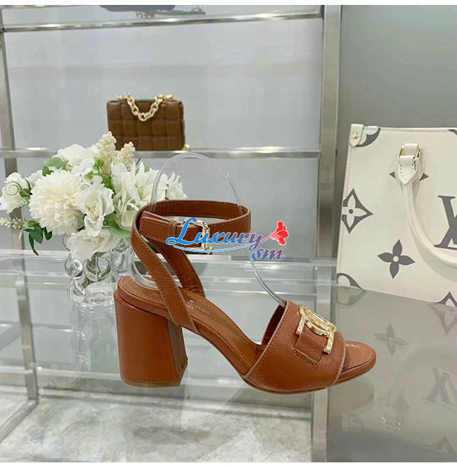 편안한 블록 힐 루이 비통이 각인된 버클로 조절 가능한