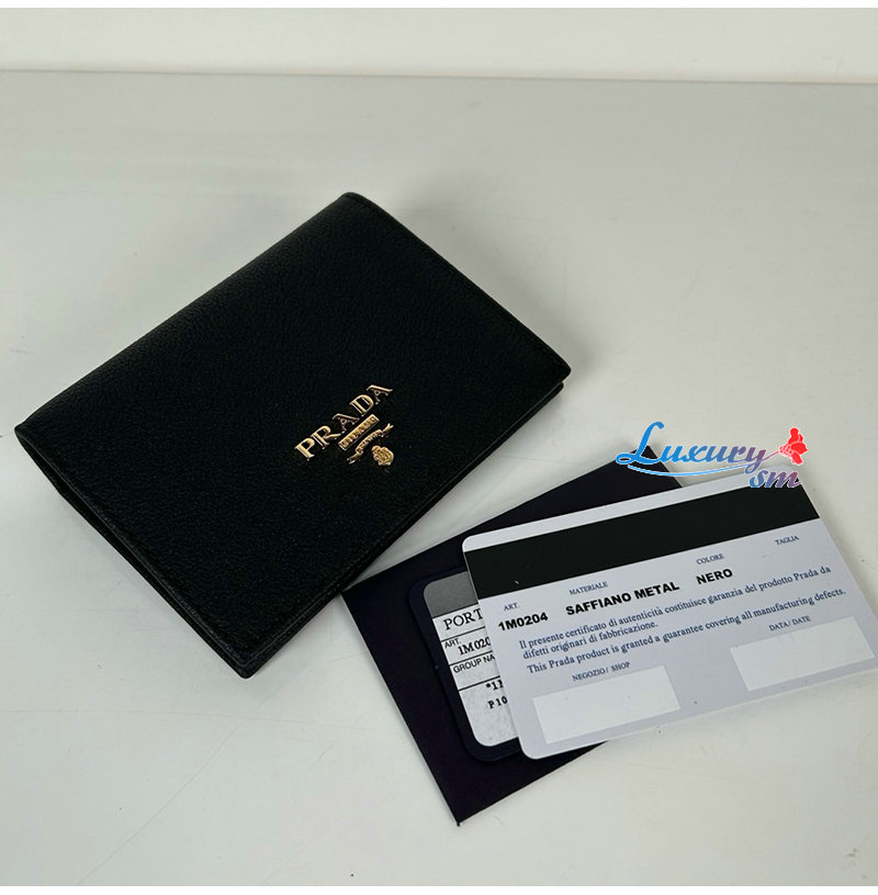 [스페셜오더]PRADA-1M0204 프라다 송아지가죽 메탈 로고 카드 지갑 블랙