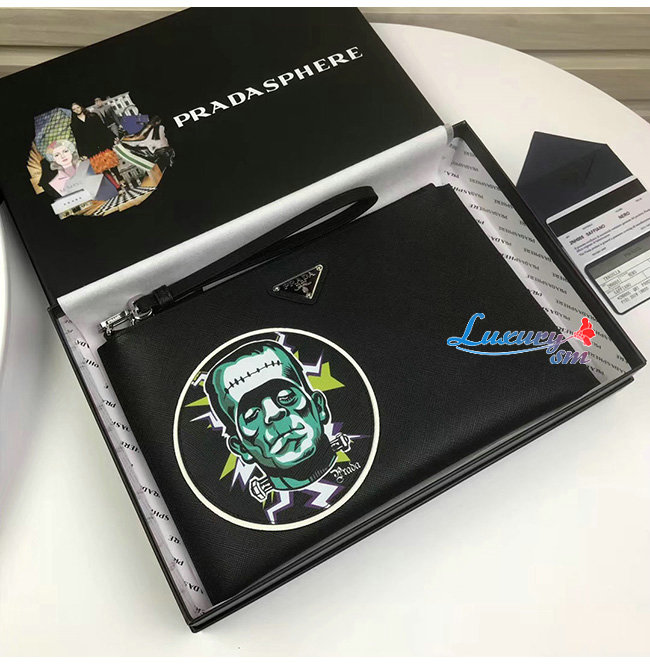 [스페셜오더]PRADA-2NH005 프라다 올오버 프랑켄슈타인 프린트 사피아노 가죽 파우치