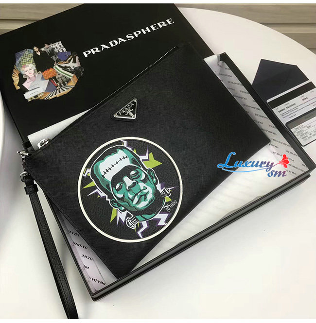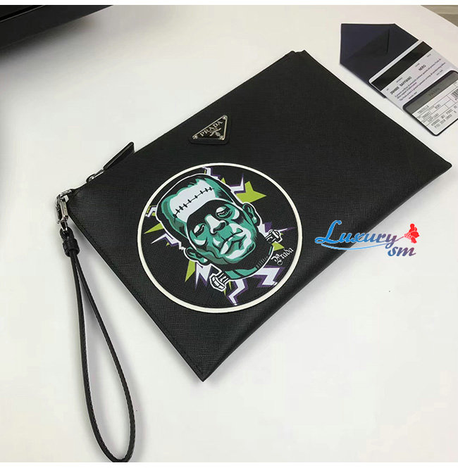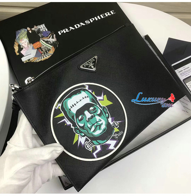 [스페셜오더]PRADA-2NH005 프라다 올오버 프랑켄슈타인 모티프 패치 사피아노 가죽 파우치