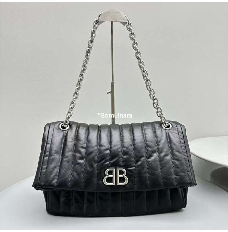 [스페셜오더]BALENCIAGA-765933 발렌시아가 블랙 퀼트 MONACO 모나코 실버 체인 라지 숄더백 43cm